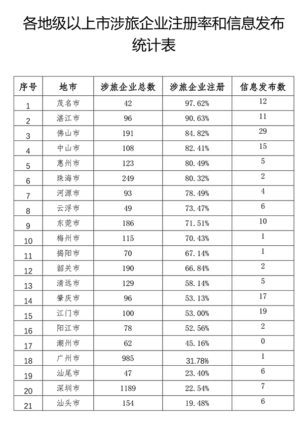 1.各地级以上市涉旅企业注册率和信息发布统计表