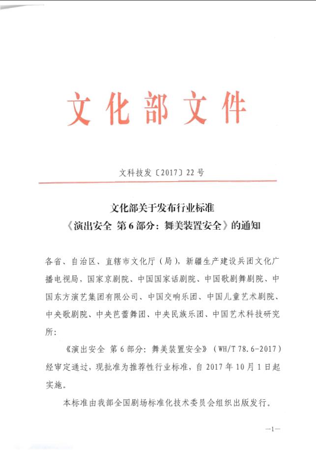 文化部关于发布行业标准《演出安全 第6部分:舞美装置安全》的通知