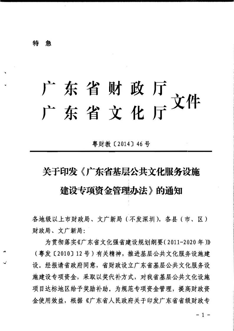 关于印发《广东省基层公共文化服务设施建设专项资金管理办法》的通知