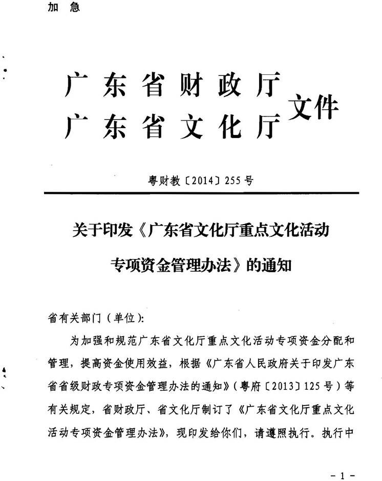 关于印发《广东省文化厅重点文化活动专项资金管理办法》的通知