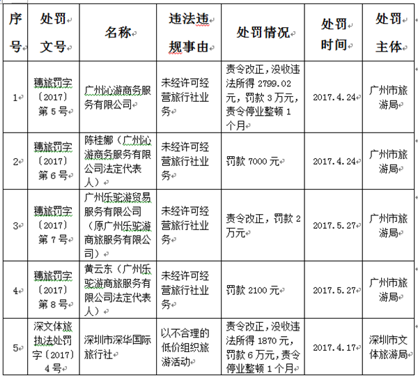 2017年第二季度旅游经营服务不良信息公示