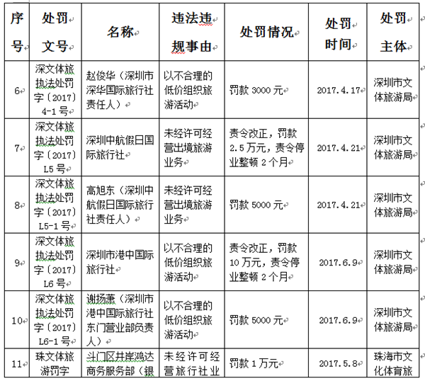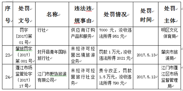 附件:2017年第二季度旅游经营服务不良信息公示表