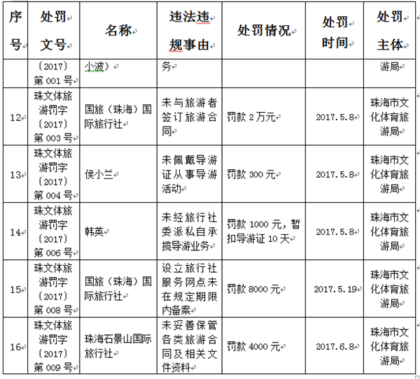 2017年第二季度,全省各级旅游主管部门共查处涉旅案件24宗,涉及13家经营旅游业务的企业和9名旅游从业人员。经研究,我局决定对以上企业和个人违法违规经营行为纳入旅游经营不良信息进行公示,公示有效时间2年(自2017年7月3日--2019年7月3日)。