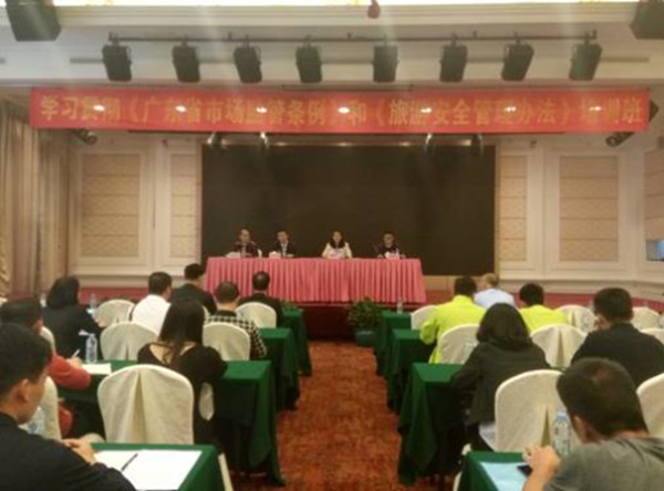 为贯彻落实《广东省市场监管条例》和《旅游安全管理办法》的精神,做好阳江市旅游安全管理工作和市场监管工作,3月31日阳江市旅游外事侨务局在碧桂园阳江凤凰酒店组织举办了2017年旅游行业《旅游安全管理办法》和《广东省市场监管条例》学习培训班,邀请中国首家旅游法律专业律师事务所广东伟然律师事务所主任、旅游法律专家、中国旅行社协会法律工作委员会委员、深圳市中级人民法院特邀调解员闵令波律师为全市旅游行业人员授课。授课内容主要是《旅游安全管理办法》和《广东省市场管理条例》条款及法律释义。