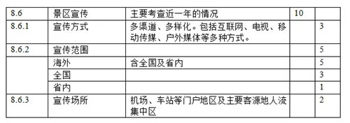 为了更好适应外部大交通条件不断改善和散客旅游、自驾车旅游不断增加的形势,引导景区及当地政府更加重视“最后一公里”的旅游交通,降低了外部大交通的分值,强化了通景交通、接驳系统和标志标识对景区发展的重要性。