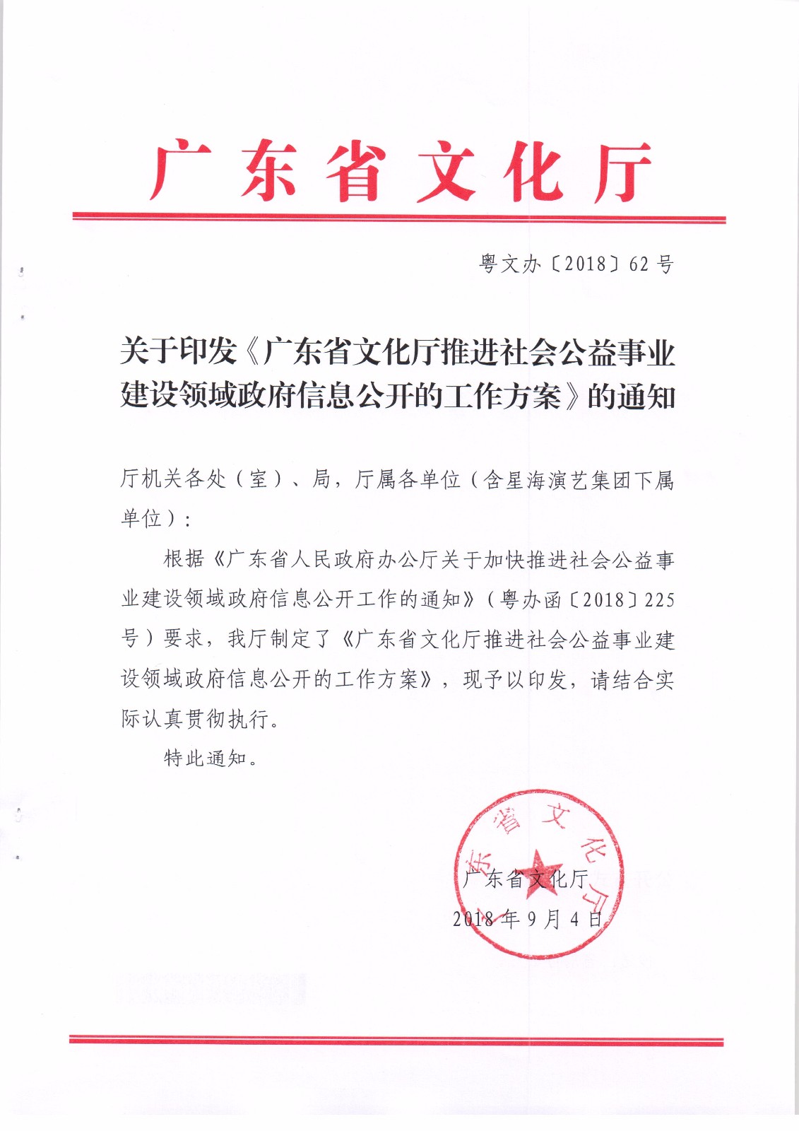 关于印发《广东省文化厅推进社会公益事业建设领域政府信息公开的工作方案》的通知