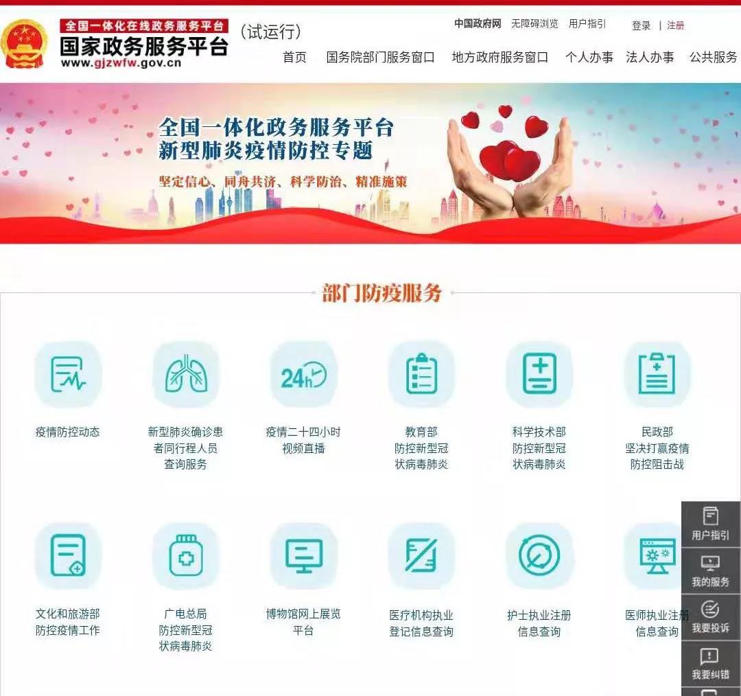 文化和旅游部积极与“全国一体化在线政务服务平台”项目组对接,将服务推送至全国一体化政务服务平台,并在国家平台“新型冠状病毒感染的肺炎防控专题”下开设“文化和旅游部防控疫情工作”专题,为公众集中提供在线文化和旅游公共服务,为打赢疫情防控阻击战发挥积极作用。