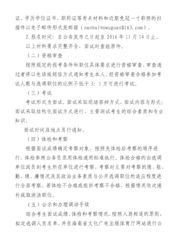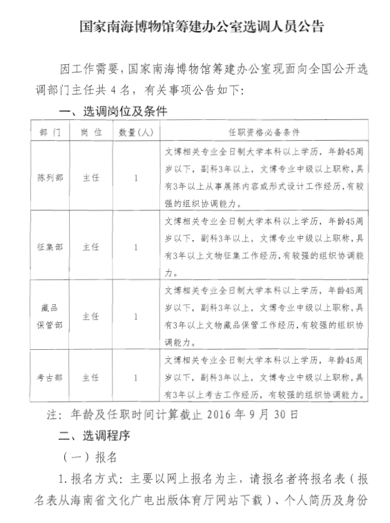 国家南海博物馆筹建办公室选调人员公告