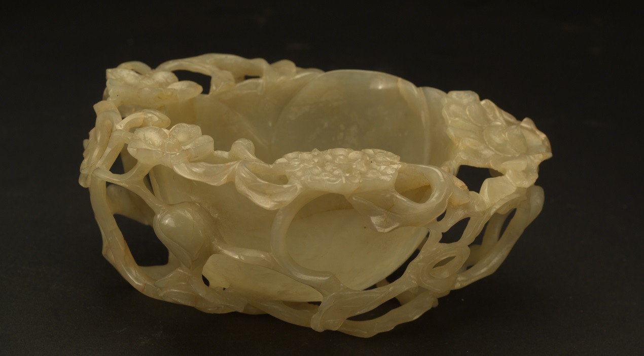 明 白玉透雕莲花杯